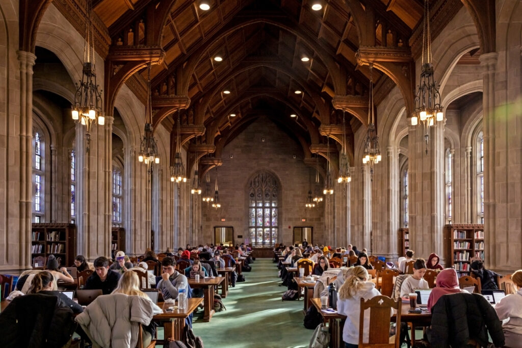 Top image: Final day in Gargan Hall of Bapst Library during the reading period for the 2021 fall semester.